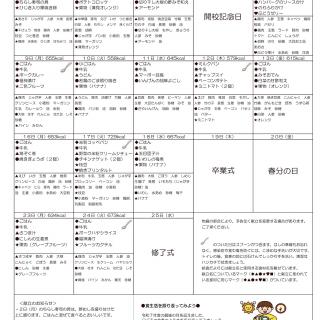 来月のこんだて 今月のこんだて表です。 令和7年4月(PDF) 令和7年5月(PDF) 令和7年6月(PDF) 令和7年7月(PDF) 令和7年8月(PDF) 令和7年9月(PDF) 令和7年10月(PDF) 令和7年11月(PDF) 令和7年12月(PDF) 令和8年1月(PDF) 令和8年2月(PDF) 令和8年3月(PDF)