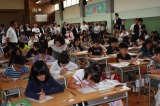 8月23日(金),知新小学校4年1組の道徳の授業を,全国大会として公開しました。内容は国際理解に関するもので,「いろいろな食べ方」という教材文を使いながら,それぞれの国の食文化について学習しました。会場は体育館で,全国からいらした多くの先生方に囲まれながらも,いつもどおり,一生懸命かつ楽しみながら学習する姿が大変立派で,見ていた先生方からとても褒められました,皆すごい!