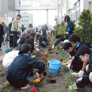 5月23日にPTA施設生活部と地域の方々と一緒に花壇の整備を行いました。