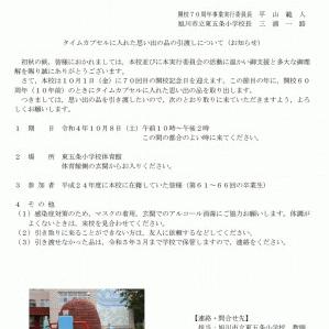つきましては,第61~66回の卒業生の皆様は,10月8日(土)午前10時~午後2時(都合のよい時に来てください。)に,思い出の品を引き渡したいので,同期の皆様にお伝えいただくようお願いします。