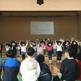 10月15日(金)、みどり幼稚園の年長さんが、学習発表会の練習の様子を見に来てくれました。