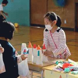 2年生活科「あそび広場」 11月18日(火)2年生「あそび広場」 〇近くにある蘭契認定こども園の園児たちと交流しました。 〇やさしく遊び方を教えてあげたり、困っている人を 手伝ってあげたりと、お兄さんお姉さんとして 園児たちと楽しく交流していました。 〇友達と話し合いしたり、役割分担した 通りにできていて大成功でした。