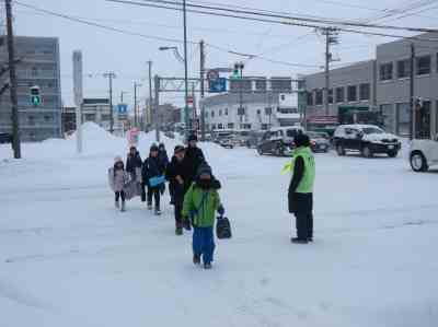 〇登校時に交通安全街頭指導を行いました。元気に朝の挨拶