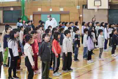 〇最後に全校児童で大きな声で校歌を歌いました。