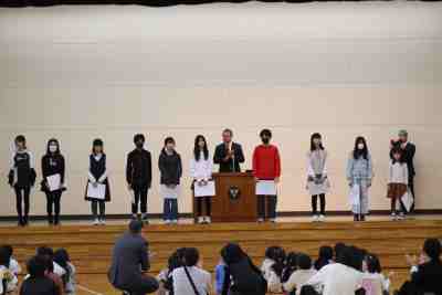 〇最後に全校児童で大きな声で校歌を歌いました。