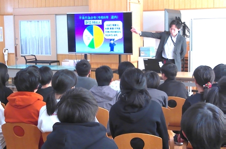 薬物乱用防止教室(6年) 〇12/16 旭川東警察署生活安全課少年係の方を講師に招いて、 薬物乱用防止教室を行いました。 〇薬物やたばこ、アルコールの危険性・依存性など、身近に潜 む薬物などの恐さについて理解を深めることができました。