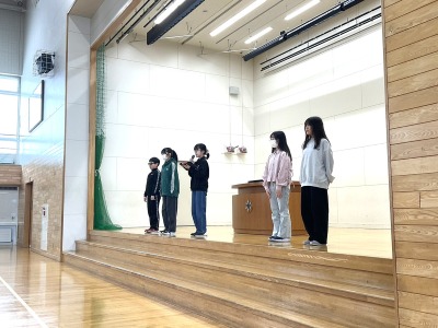 〇その後、児童会旧三役を代表して、6年生の旧会長が退任の