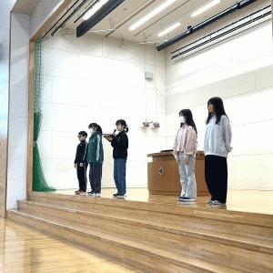 〇3/3 全校朝会で「令和7年度児童会三役の認証式」と「伝