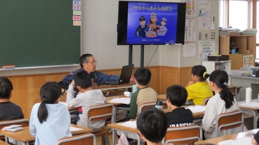 〇10/17 旭川南消防署の消防士さんに来校いただき「消防出前