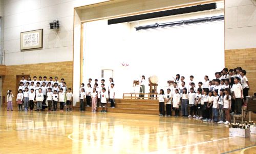 〇学校1位と、学年1位の子どもたちに、児童会から賞状が渡