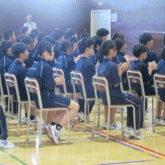 さて、集会では美化委員会主催の「お掃除コンテスト」(毎月重点箇所を決めて、月末に委員が点検)の集計結果が、委員長のK・Mさんから発表されました。1位2年2組、2位1年2組、3位1年1組と下学年の健闘が光りました。3クラスには「頑固な汚れ落としグッズ」が贈呈されました。まとめには「9月は全ての箇所を重点にし、環境を整えて後期に向かおう」という呼びかけがありました。