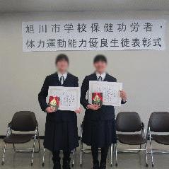 さて、先週土曜に、10月8日に実施された「旭川市体力運動能力優良生徒審査会」の表彰が行われ、本校2年女子のK・NさんとY・Yさんが受賞しました。市内各中学校の精鋭達が様々な体力運動能力に関わるテストを受け、その総得点の男女の上位各5名が選ばれたものです。見事な結果、おめでとうございます。