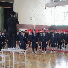 昨日まで卒業生、在校生それぞれの立場で卒業式の流れを確認し、礼法や証書の受け渡し、合唱などを練習してきました。晴れの舞台である式場などもきれいに作られました。今日はそのまとめとなる総練習です。