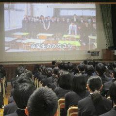 2年生企画で、各クラスごとに卒業生に寄せるメッセージは、編集に凝って3年生の良さとエールの気持ちを表現していました。続いてスクリーンにはお世話になった小学校の先生が登場。こんなにもノリよく、楽しく心温まる映像を作成してくださった先生には心から感謝したいです。