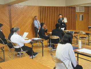 研修内容は市内各校の生徒会・委員会活動の内容や全校で行うレクレーションなどの実践交流についてでした。グループに分かれて様々な学校と意見や質問を交換し、知識を深めました。引率した大友先生によると、学校への帰路で「『あの学校のあの活動をやってみたいね』などの話題が聞かれ、二人とも大いに刺激を受けていました」とのことで、これからの更なる生徒会活動の充実を楽しみにしたいです。