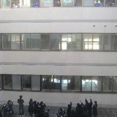 半月遅れの「冬将軍」到来...今までの分を取り返すようにもりもりと雪が降ってきます。各予報ではこの後冷え込みが厳しく、積もった雪は根雪になるだろうとのこと。縦の写真は先週、中庭で3年生が撮った「人文字」の様子。何に使うのでしょうか...ともかく、先週のうちに撮っておいてよかった。