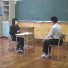 さて、写真は3年面接練習の様子です。いくつかの教室に分かれて行っています。合間に苦笑が漏れ聞こえることも...(どんな受け答えがあったのかな?)私も数名と練習しました。