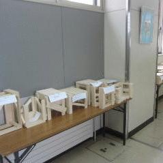1階の廊下の一番目立たない一角に技術科の木工作品が並べられてきました。