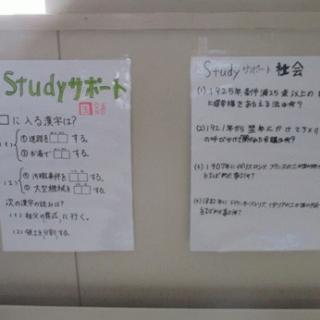 さて、期末テストまであと1週間となり、放課後は学習専門委員の手で恒例となった「Studyサポート」が掲示されました。最初は真っ白なコピー用紙ですが、学習委員の手によって教科ごとに思い思いの内容で作られています。