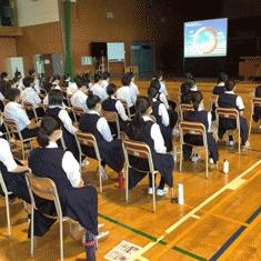 3年生はいつもより早目に昼食をとり、午後の説明会に臨みます。7月に入り、暑さ対策のためジャージ着用が日常になっていましたが、この時ばかりは別です。きちんと制服を着ての参加でした。会場となった体育館は非常に暑く、いるだけで汗がにじんでくるほどですが、高校の先生方の説明を真剣に聞いていました。今回は特色のある学校という点でお願いした6校でしたが、これからは部活動体験会や1日体験入学など各校で予定されています。