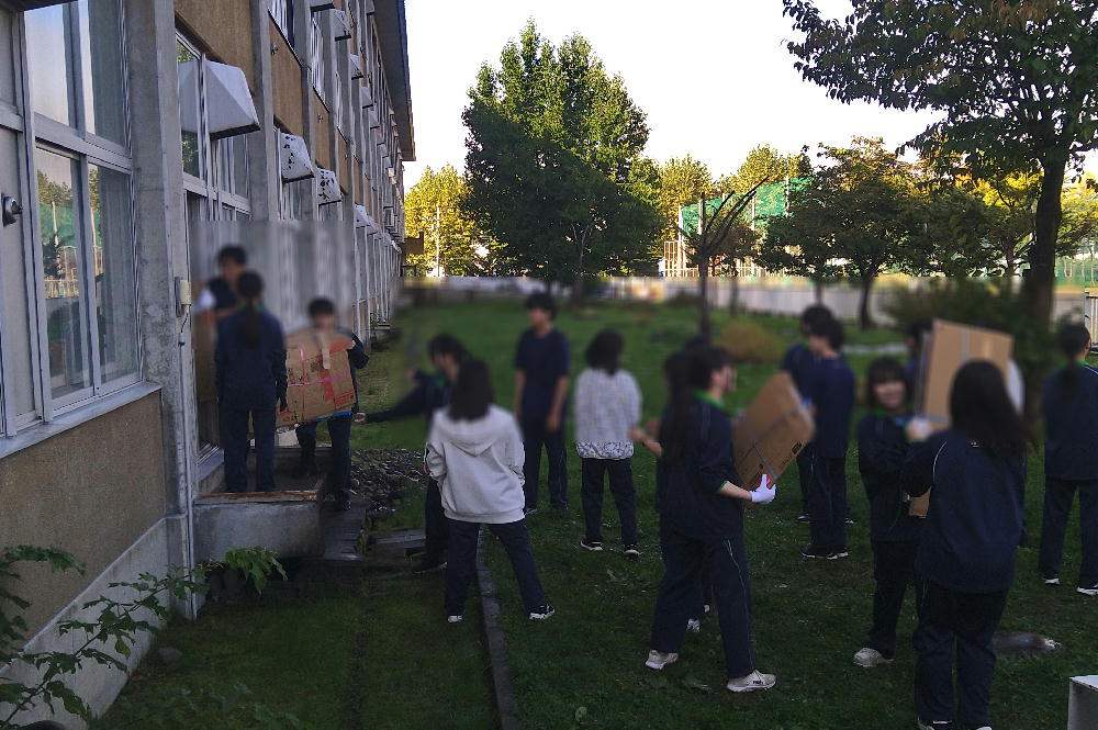 秋の廃品回収を行いました! 9月27日(土)、秋の廃品回収を行いました。 今回は、吹奏楽部の子どもたちが中心となり、学校に 集まってきた廃品の運搬等を行ってくれました。 「吹奏楽部の子どもたちが、自ら進んで列を作り、廃品の 運搬を行っていました(下の写真)」と報告を受けています。 色々な場面で自ら進んで動くことができる緑中の子どもた ちは本当に素晴らしいなと感じています・・・・ ご協力いただいた、地域・保護者の皆様、ありがとうござ いました。