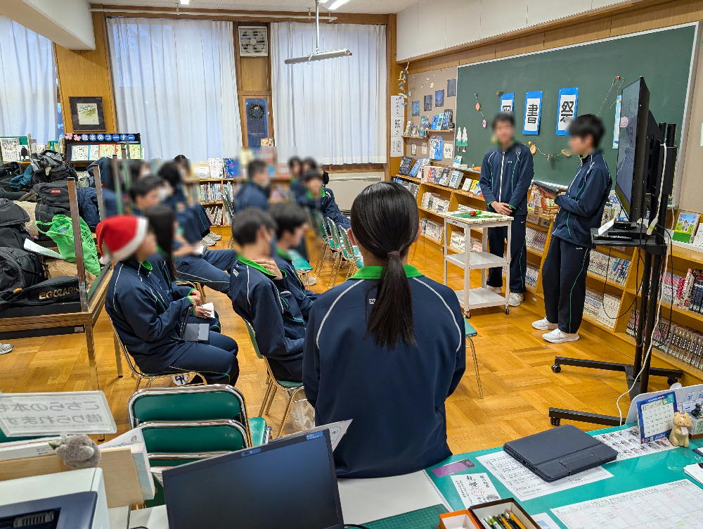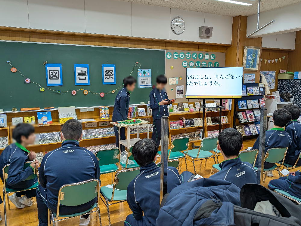 図書館祭・・・ 先日、放課後、図書館祭が行われました。 これは、図書委員が中心となり、本の読み聞かせやそれに まつわるクイズなど、工夫を凝らしたイベントでした。 普段、静かな男子生徒が読み聞かせをしている姿に、 微笑ましさを感じました。 とても心温まるお祭りでした・・・