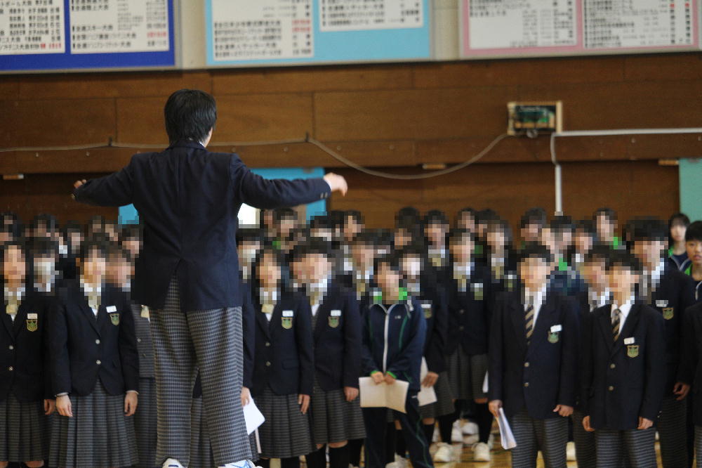 卒業式の練習が始まりました! 3月13日(金)の卒業式に向けて、いよいよ練習が始まりました。 下の写真は、在校生による練習風景です。 みんな卒業生のために、真剣に歌を歌っています。 聞くところによると、卒業生の式練習では、その真剣の姿から、すでに 感動している先生方がいたようです。 そんなすてきな生徒たちです。 金曜日の卒業式、私も心を込めてお話したいと思います。