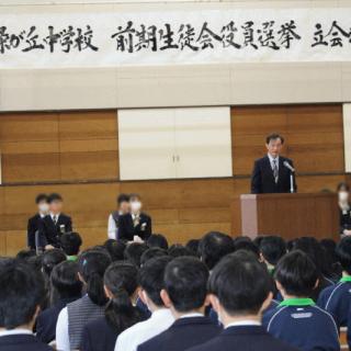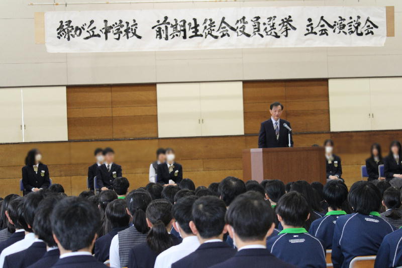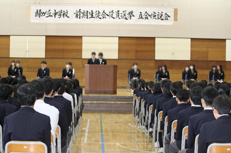 R8年度生徒会役員選挙立ち会い演説会 3月19日(木)、令和8年度、前期生徒会役員選挙の 立ち会い演説会が行われました。 9名の立候補者とその責任者の堂々としたお話は、新年度の 緑が丘中学校のさらなる飛躍を確信させるものでした。 信任された9目の皆さんを中心に、この緑が丘中学校の伝統を 継承し、アップデートすることを期待します。