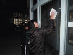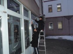 同じく22日(月)放課後、男子ソフトテニス部員がボランティア活動で、生徒玄関の清掃を行いました。普段手の届かない場所などを、脚立を使いながら丁寧に清掃しました。お陰様で玄関がきれいになりました。男子ソフトテニス部の皆さん、ありがとうございます!