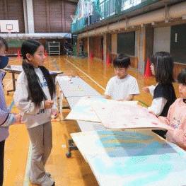 R7 生活科「あそびのひろば」(1・2年) 12月2日に、生活科で1・2年生が「あそびのひろば」を行いました。3・4年生、5・6年生を体育館に招待して。工夫を凝らした様々な「あそびのお店」を開きました。
