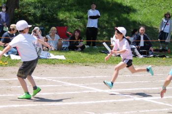 1年生から6年生まで、それぞれの競技を楽しんだ後、表彰式でした。 運営協力いただいた保護者の皆さんも楽しく参加いただけて、よかったです。 |