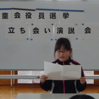 また,総会に引き続いて,新年度の児童会役員選挙を行いました。今回は全員が無投票で当選となり,立会演説会では,会長・副会長・書記に当選した3名が力強い決意発表を行いました。そして,2月24日(月)の全校朝会で,校長先生から認証状を渡していただき,新三役としての活動がスタートしました。「6年生を送る会(3/7)」の計画が最初の仕事です。
