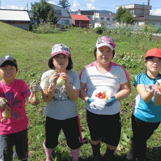今年は,タマネギがたくさん採れました。今日は,最後のタマネギを収穫しました。