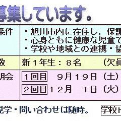 (1)通学上の条件 ○ただし,保護者による送迎を原則とする。 ○特別な配慮を必要としないこと。 ○必要に応じて,医師の診断書又は旭川市就学指導委員会の判定書の提出を求めることがある。 ○特認校としての教育活動を維持するためのPTA活動への協力。 (4)就学期間の条件 ○期間は1年以上の通年就学の場合に限り,短期間の入学は認めない。 |