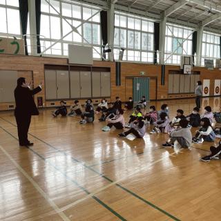非常口は!! 1月25日(木) 避難訓練を行いました。 地震から火災が発生した想定です。 体育館に集まった後、児童からの発表を聞いたり,校長先生のお話を聞いたりしました。 校長先生のお話の中では、非常口の確認をすることもできました。