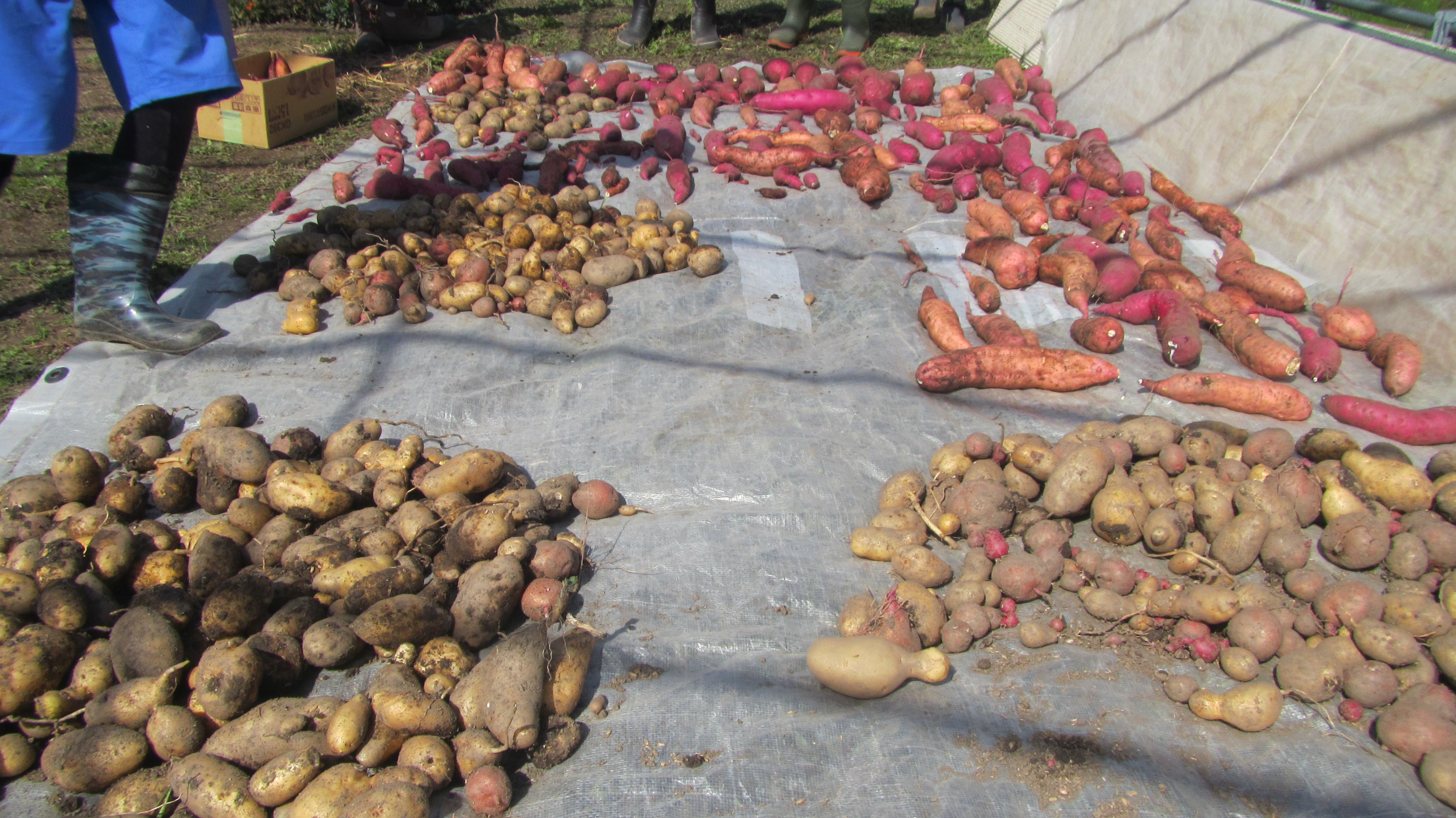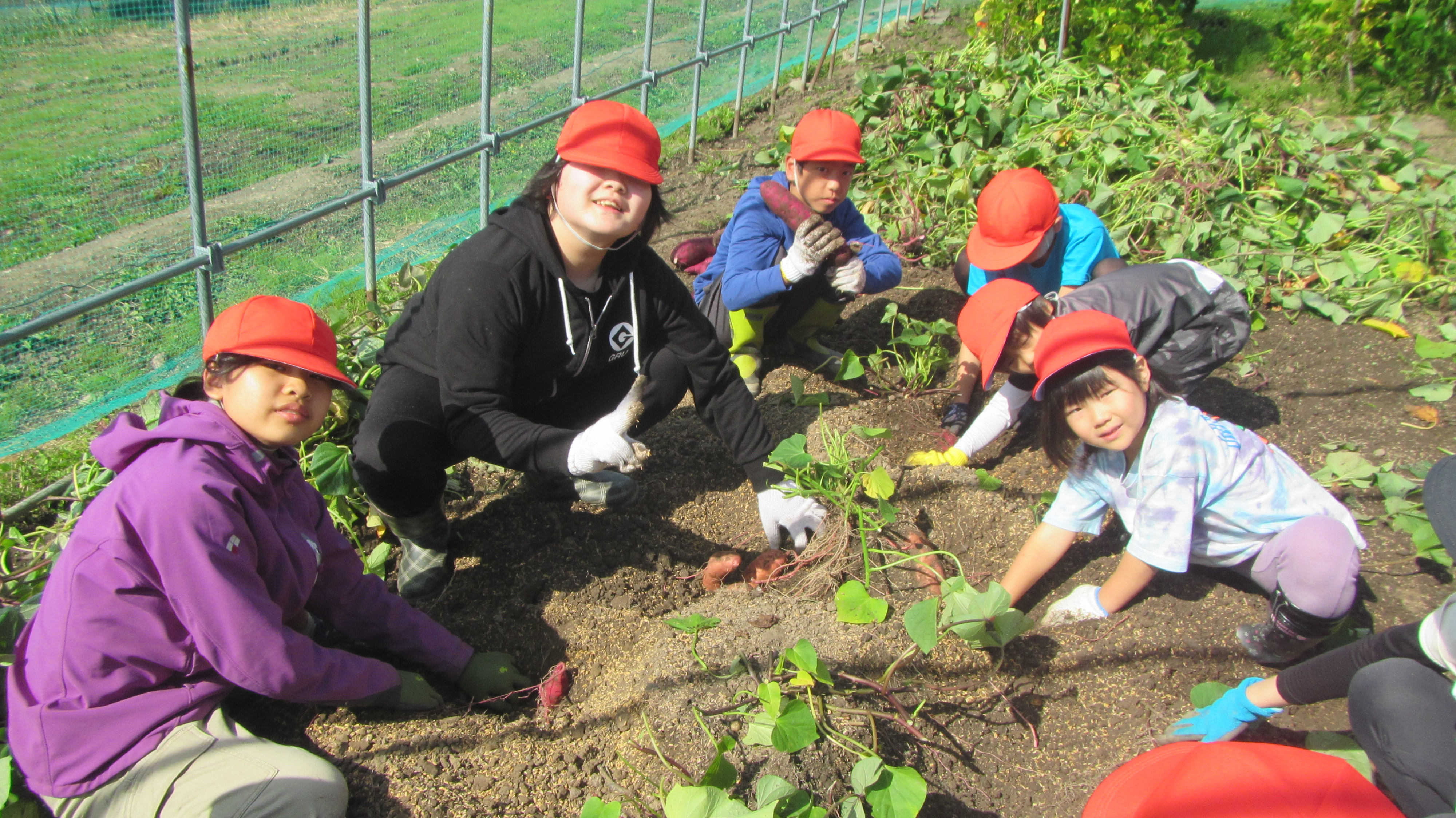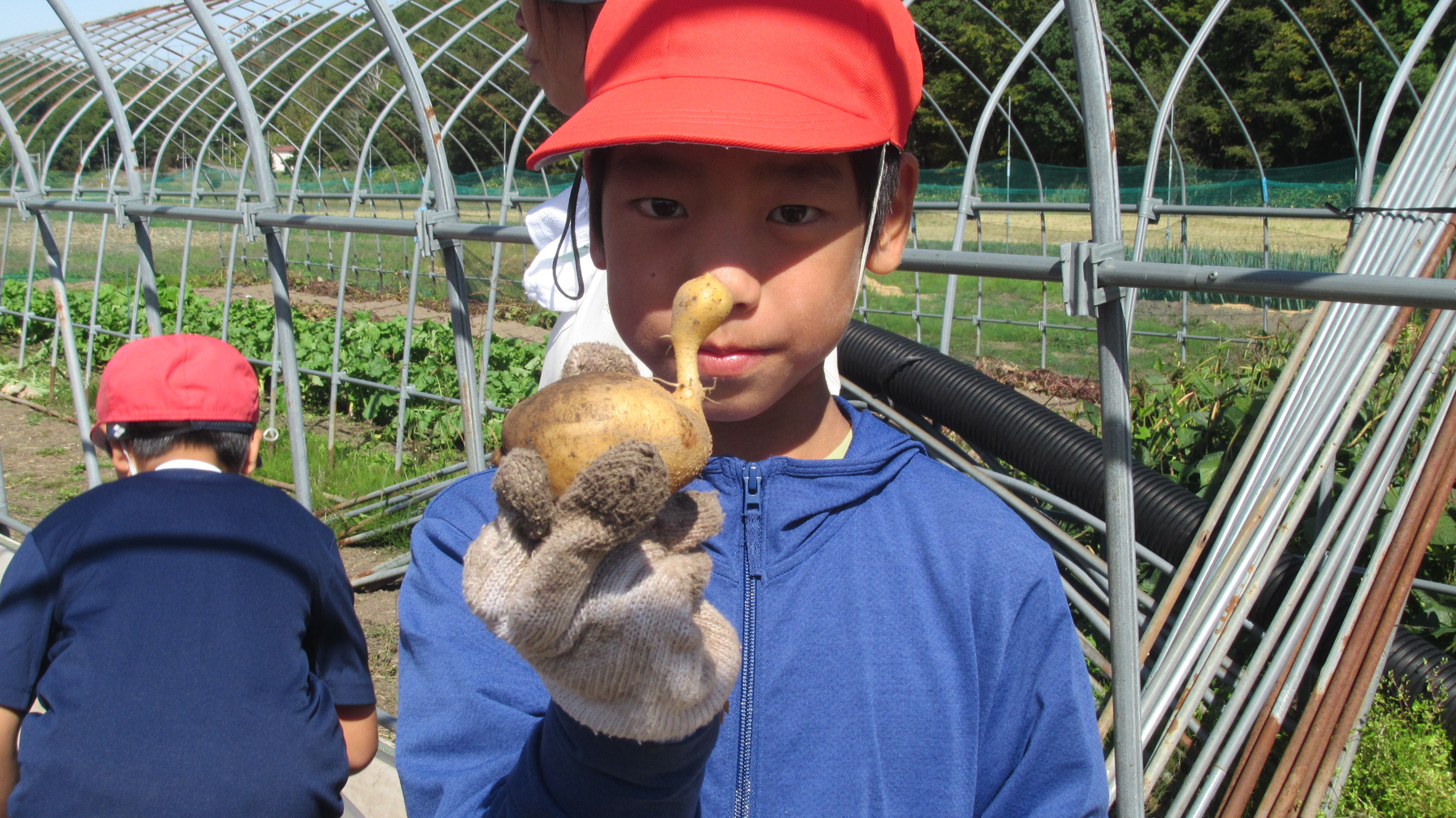9月24日(水)、地域の江蔵さんの畑におじゃまし、サツマイモやジャガイモなどの収穫体験をさせていただきました。