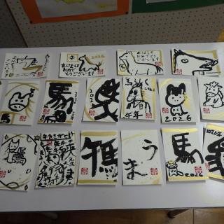 本田蒼風先生を講師にお迎えしてデザイン教室を行いました。授業の初めには「アート」と「デザイン」の違いについて分かりやすくお話しいただき、さらに旭川市がユネスコ創造都市ネットワークに加盟している"デザインシティー"であることも教えていただきました。子どもたちは墨汁と筆を使い、年賀状のデザインを一人ひとり思い思いに考えて書き上げました。仕上げには先生から金色のアクセントと判を押していただき、作品が一層華やかになり、子どもたちは満足そうな表情を見せていました。完成した年賀状は「ふるさと家族」に届けられる予定であり、お正月には、心を込めて作った作品が地域の方々へ温かい気持ちを届けてくれることでしょう。
