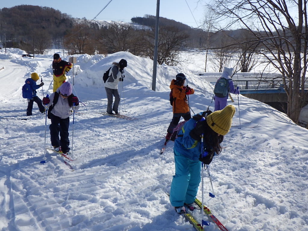 冬の野山活動 2月26日(木)に低学年、27日(金)に中・高学年が、冬の野山活動に出かけました。今年は雪が少なく、例年のようにコースの奥まで進むことはできませんでしたが、その分、足元の自然や周りの景色をじっくり味わう時間となりました。歩く途中では、木々の間にできた氷柱を見つけたり、動物たちの足跡をたどったりと、冬ならではの発見がたくさんありました。折り返し地点では、みんなで輪になっておやつタイム。冬の終わりを感じながら、仲間と過ごす穏やかなひとときとなりました。